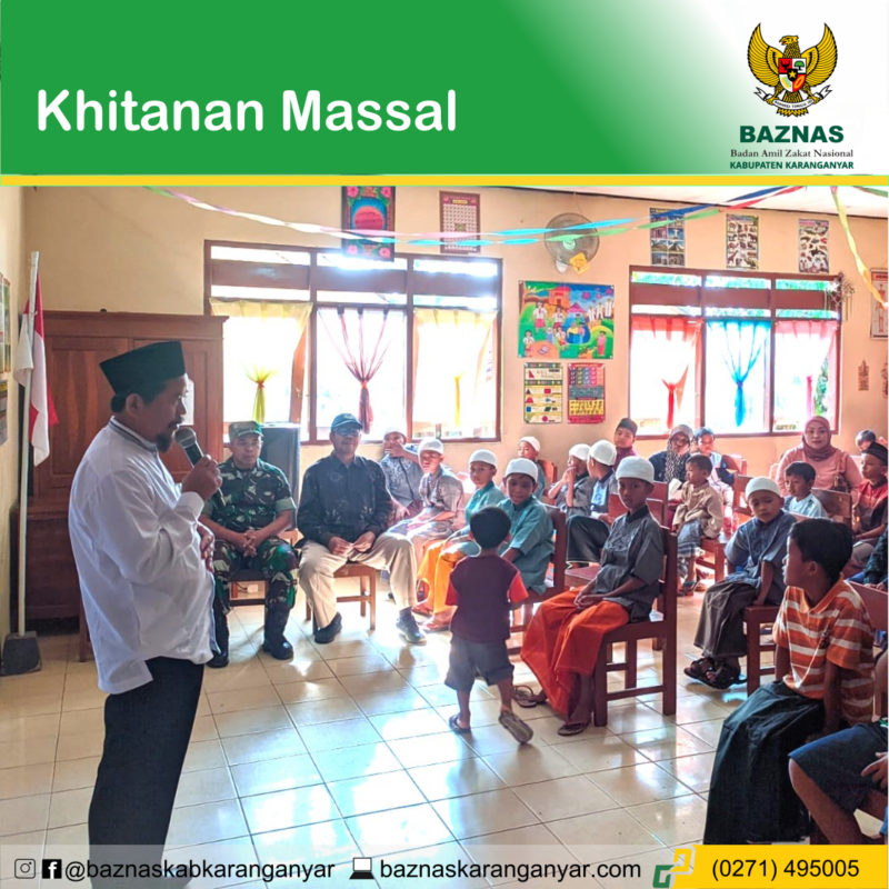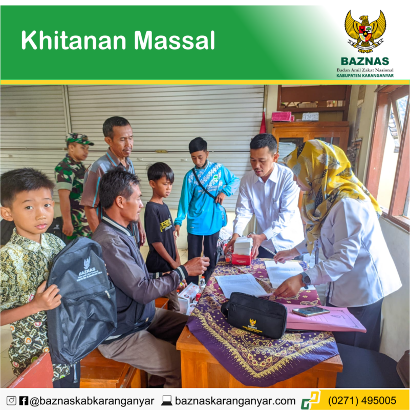 BAZNAS Kabupaten Karanganyar kembali selenggarakan khitan massal bertempat di Rumah Sakit Ja’far Medika Desa Munggur, Kecamatan Mojogedang, Kabupaten Karanganyar, Rabu, 12 Juli 2023. Acara tersebut merupakan rangkaian kegiatan TNI Manunggal Membangun Desa (TMMD) reguler ke 117 yang diselenggarakan di Desa Gentungan, Kecamatan Mojogedang, Kabupaten Karanganyar.
