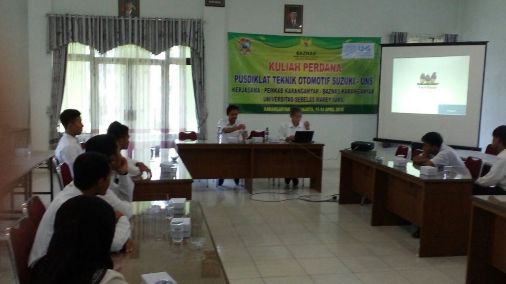Karanganyar – Untuk mensukseskan program Pemerintah Kabupaten (Pemkab) Karanganyar yaitu “KARANGANYAR CERDAS”, awal tahun ini Baznas Karanganyar melakukan kerjasama dengan UNS membuka Pendaftaran Program Pendidikan D1 PUSDIKLAT UNS TEKNIK OTOMOTIF SUZUKI. Kuliah Perdana untuk Program ini, dilaksanakan selama 3 hari di Aula BAZNAS Kabupaten Karanganyar Senin-Rabu (11-13 April) Jam 08.00- 13.00 WIB.