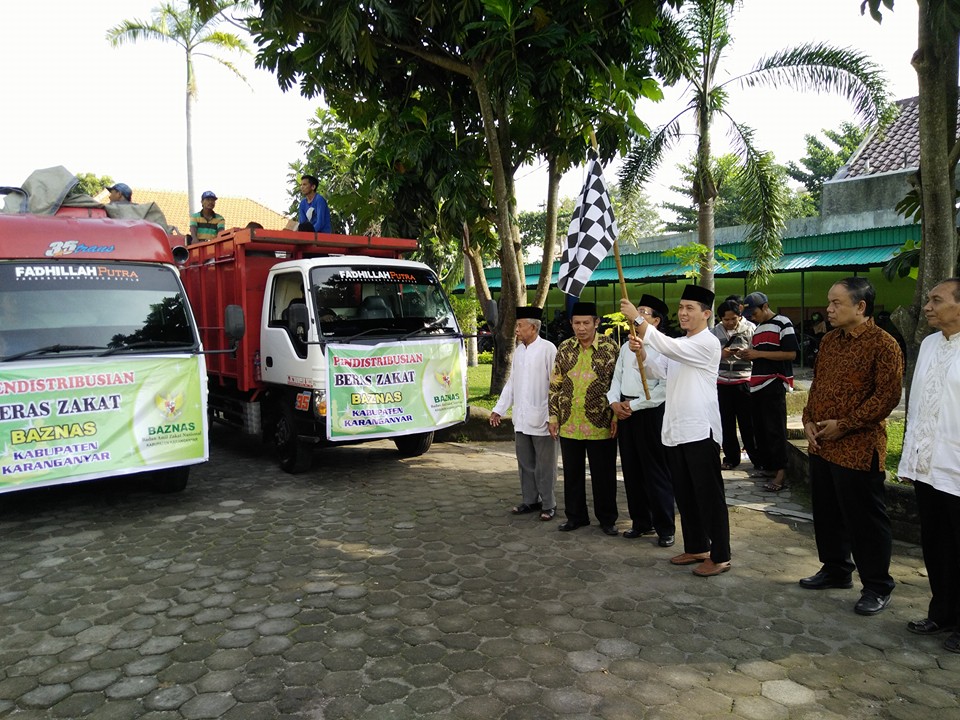 [/av_icon_box][av_textblock size=’14’ font_color=” color=”]Karanganyar – Seperti tahun – tahun sebelumnya, untuk menyempurnakan ibadah di bulan Ramadhan, Badan Amil Zakat Nasional (Baznas) Karanganyar mendistribusikan Zakat Fitrah yang sudah terkumpul dari umat ke seluruh area di Kabupaten Karanganyar. Distribusi Zakat Fitrah diberangkatkan oleh Wakil Bupati Karanganyar Rohadi Widodo, SP dari Halaman Masjid Agung Karanganyar, Sabtu (2 Juli). Pendistribusian dilakukan dua tahab yaitu Sabtu dan Minggu ke seluruh Kantor Urusan Agama (KUA) di Kabupaten Karanganyar.